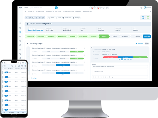 Born out of every business owner’s need of a robust, competent CRM that doesn’t break the bank, SkyCRM is designed specifically to help salespeople exceed their revenue goals. SkyCRM has the complete features of a CRM, from lead and sales management to the more advanced and powerful CRM tools, like our state-of-the-art Sales and Marketing Robots. SkyCRM is the first CRM that generates new leads and engages with those leads to perform qualification duties.